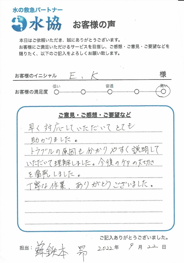 水協では事前の説明やお見積もりの提示を徹底し、お客様に安心してご依頼いただけるよう務めております。また何かお困りの際にはいつでもお気軽にお声掛けいただければ幸いです。